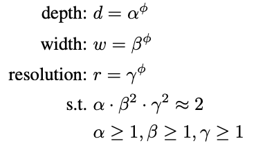 is a user-specified coefficient that controls how many more resources are available for model scaling, while specify how to assign these extra resources to network width, depth, and resolutions respectively.