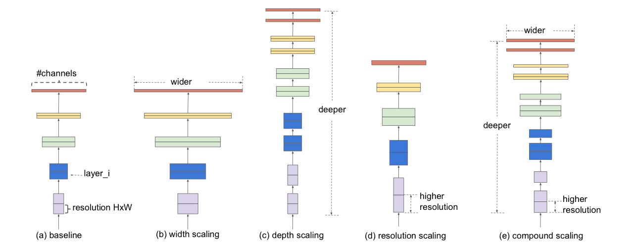 = 정확도와 연산 효율을 동시에 높이려면, CNN을 키울 때 너비·깊이·해상도를 골고루 조절하는 것이 핵심이다.