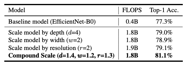 - : 연산량이 2배 늘어나는 조건을 만족시키는 scaling 균형 공식
