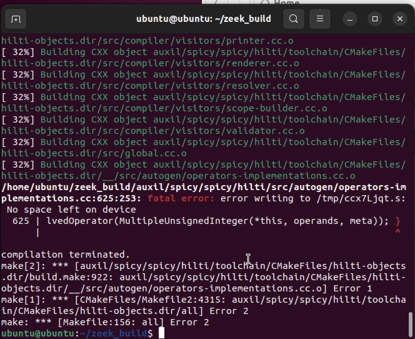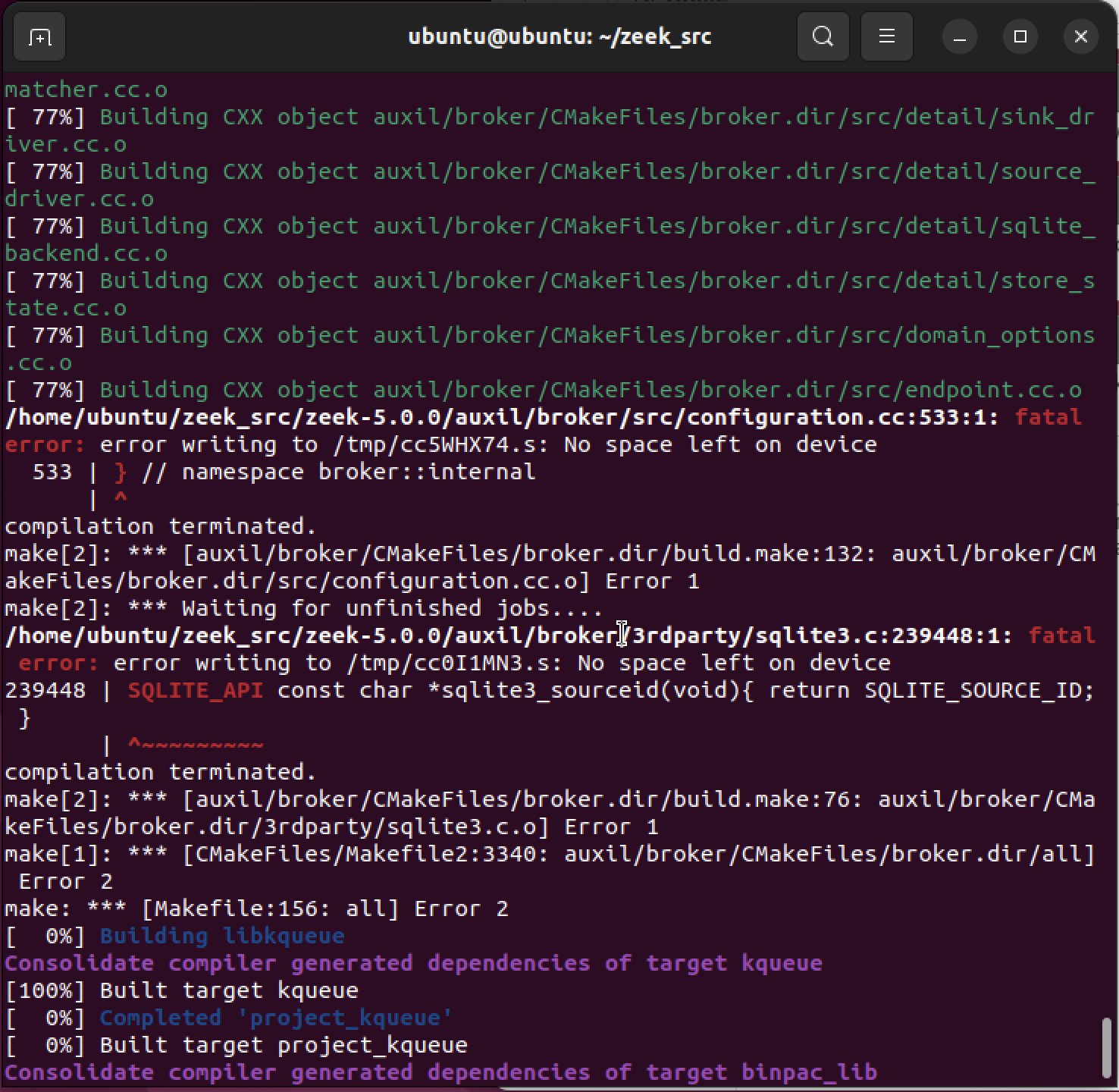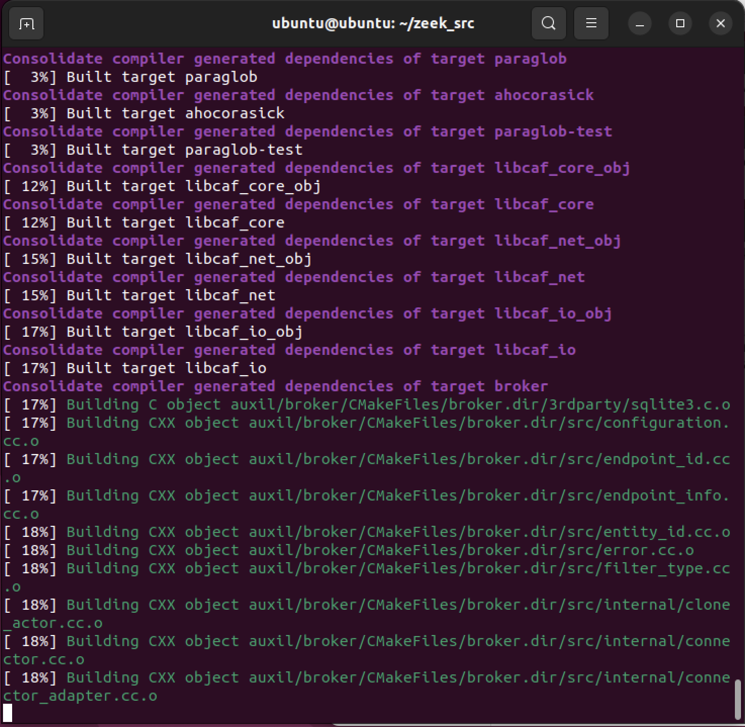 아니!!!!!!! zeek_build 디렉토리가 아니라 home에서 갑자기 빌딩되기 시작해버림.. 아니 아;;; 아아아아아ㅏ아아아ㅏ!!!!!!