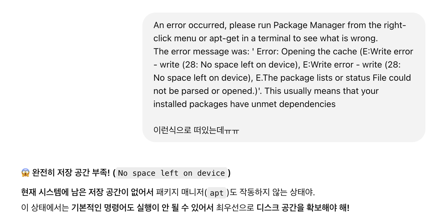 진짜 우분투 너 나한테 이러는거 아니야ㅜㅠㅠ 원인은 저장공간 부족..