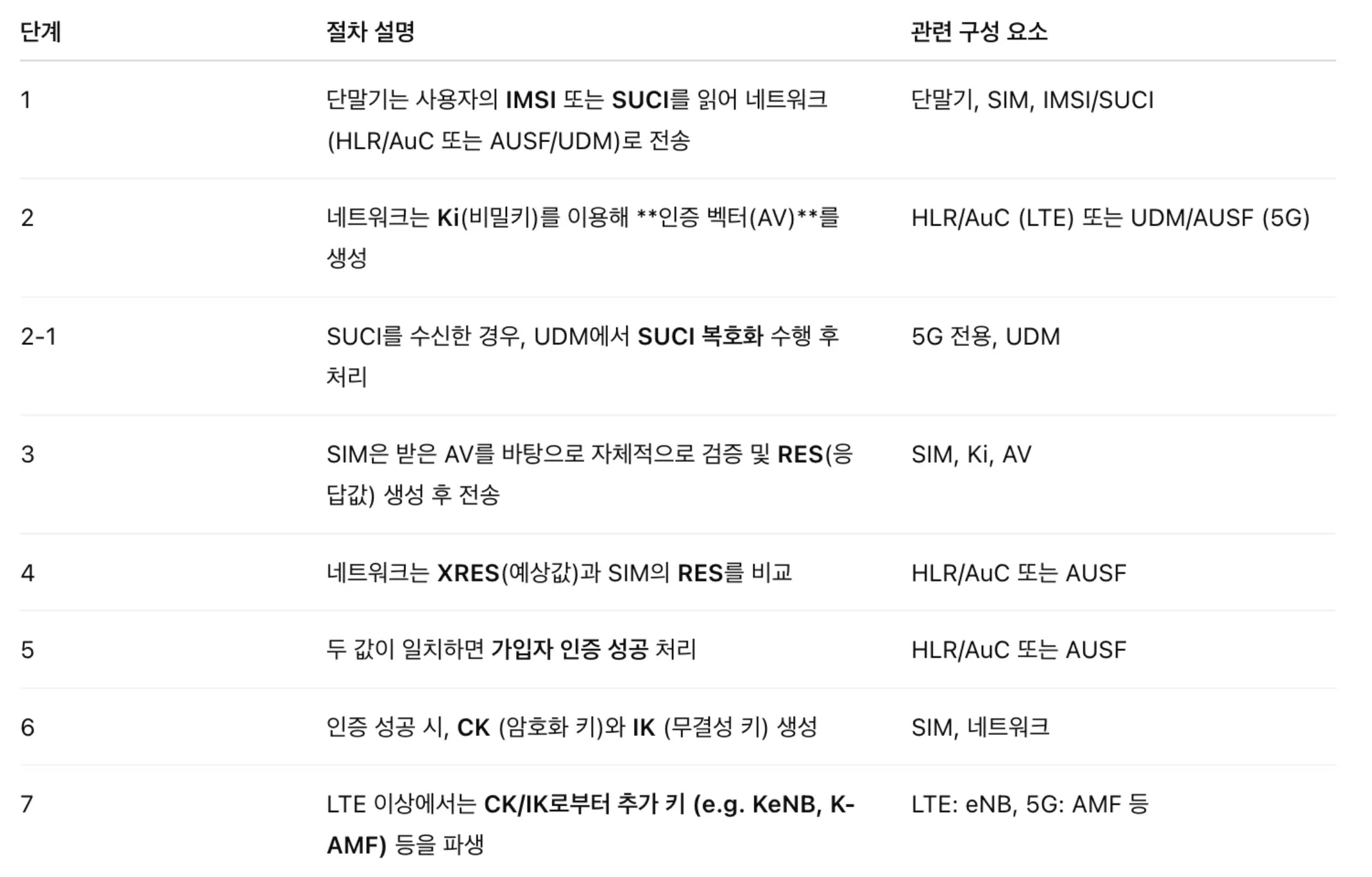 - 유심 인증키 (Ki): 통신사와 유심 간의 인증에 사용되는 비밀 키