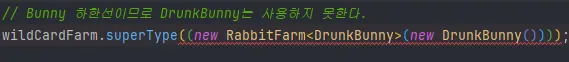 wildCardFarm.superType((new RabbitFarm<DrunkBunny>(new DrunkBunny()))); ❌