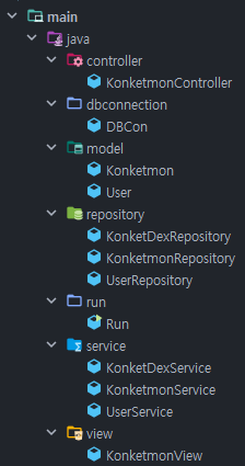 Controller하나와 Repository 하나로 User, Konketmon, Konketdex 도메인의 Service와 DAO 계층을 다루었던 것을 나누자고 한 것이다.