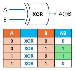 A와 B를 XOR로 결합해 계산 가능