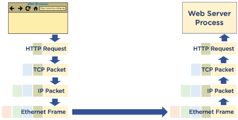 URL을 기반으로 HTTP 요청을 생성합니다.메서드(GET, POST), 헤더 정보(User-Agent, Accept 등).HTTP Request는 운영 체제의 네트워크 스택을 따라 아래 순서로 처리됩니다:HTTP → TCP → IP → Ethernet네트워크를 통해 전송.