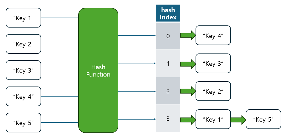 - 예를 들어, Java는 개별 체이닝 방식으로 해시 충돌을 처리하며, 이 방법은 대규모 데이터를 다룰 때 유연한 처리를 제공합니다.