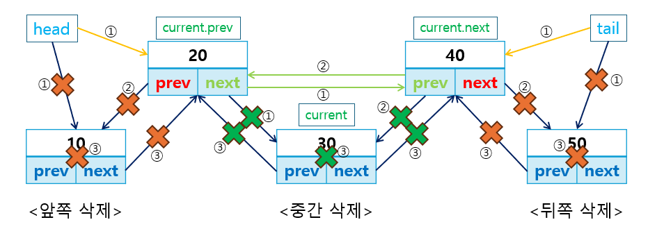 LinkedList | O(1) (앞/뒤) | O(1) (앞/뒤) | O(n) (순차 탐색) |