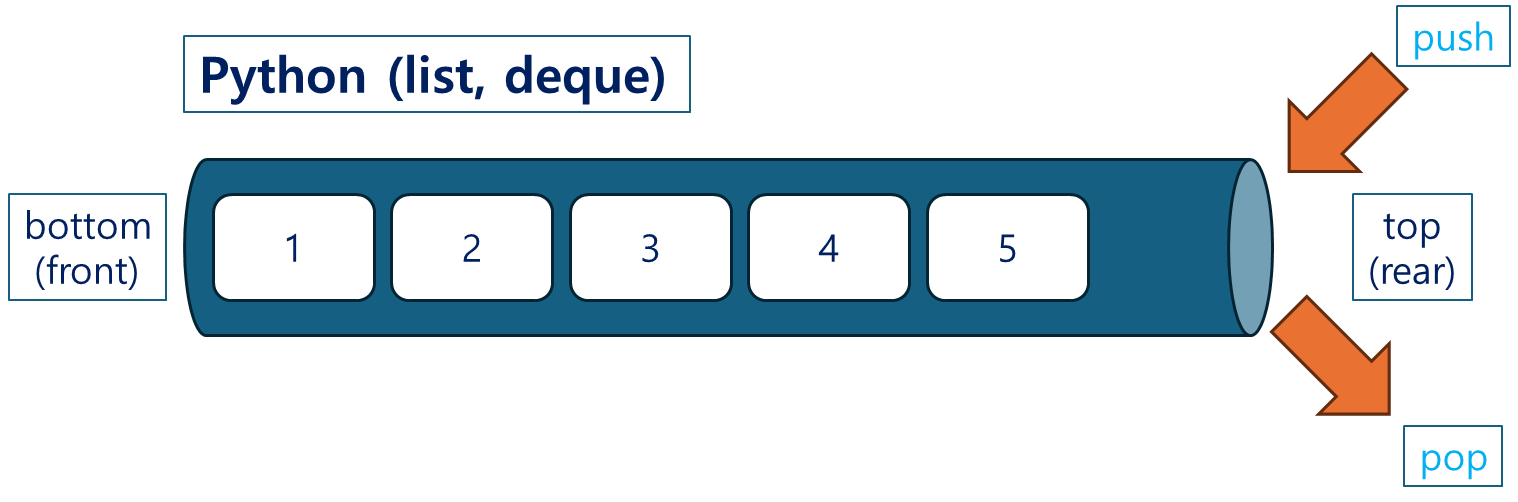 기능을 지원하기 때문에, Stack과 동일하게 사용하실 수 있습니다.Python에서는 별도의 Stack