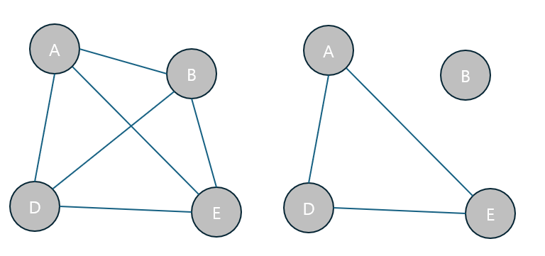 - 예시: 모든 사용자들이 서로 연결된 소셜 네트워크.