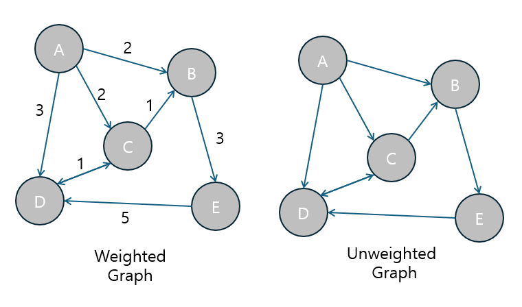 - 가중치는 간선을 통해 이동하는 비용이나 거리 등을 나타내며, 이를 통해 최단 경로나 최소 비용 문제 등을 해결할 수 있습니다.