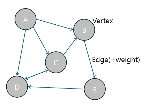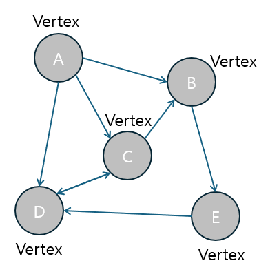 - 정점(Vertex): 데이터를 저장하는 기본 단위입니다.
