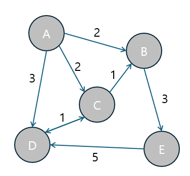 - 표기: 간선에 가중치를 적어서 표시합니다.