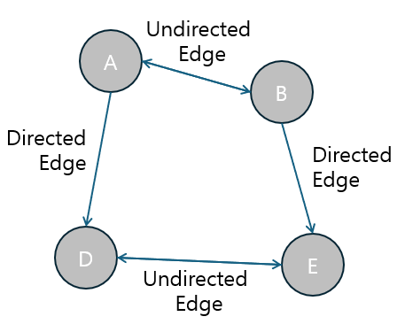 - 무향 간선(Undirected Edge): 양방향 연결을 의미하며, A에서 B로의 경로와 B에서 A로의 경로가 동일하게 존재합니다. (