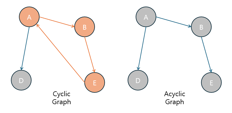 - 예시: 도로망에서 다시 출발지로 돌아오는 경로가 존재하는 경우.