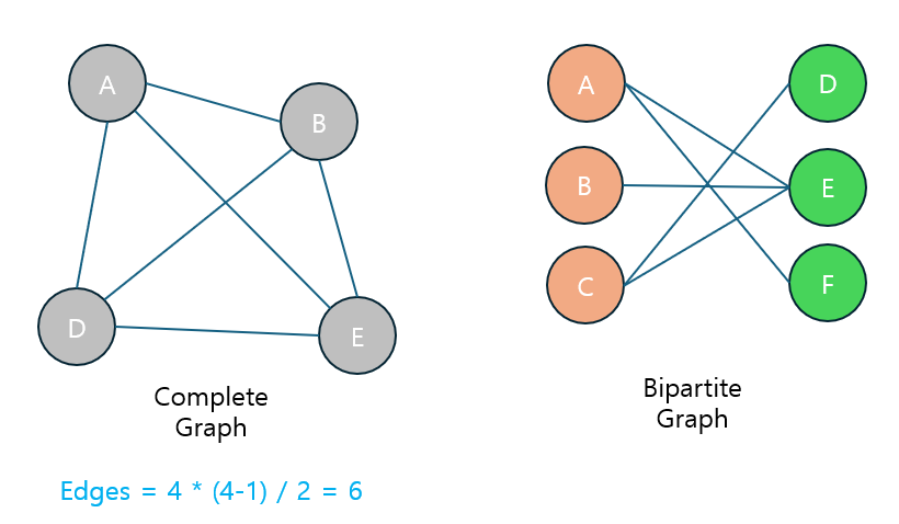 - 예시: 완전한 컴퓨터 네트워크에서는 모든 컴퓨터가 연결되어 있어야 합니다.