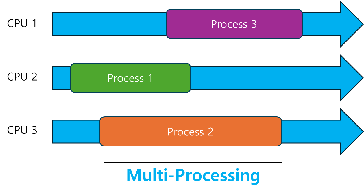- 여러 CPU(또는 코어)를 사용하여 여러 작업을 병렬로 실행하는 방식입니다.