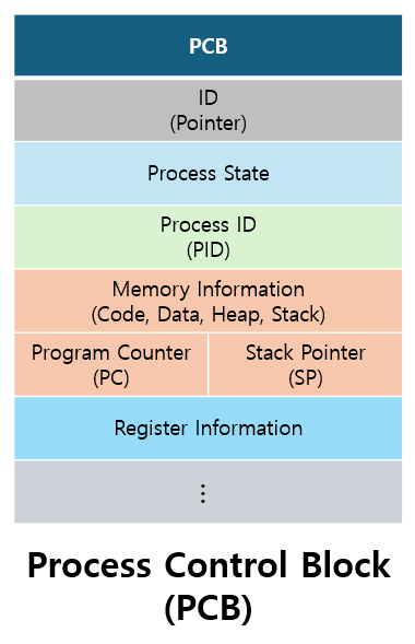 운영체제는 각 프로세스의 상태와 관련된 정보를 프로세스 제어 블록(PCB, Process Control Block)에 저장합니다.