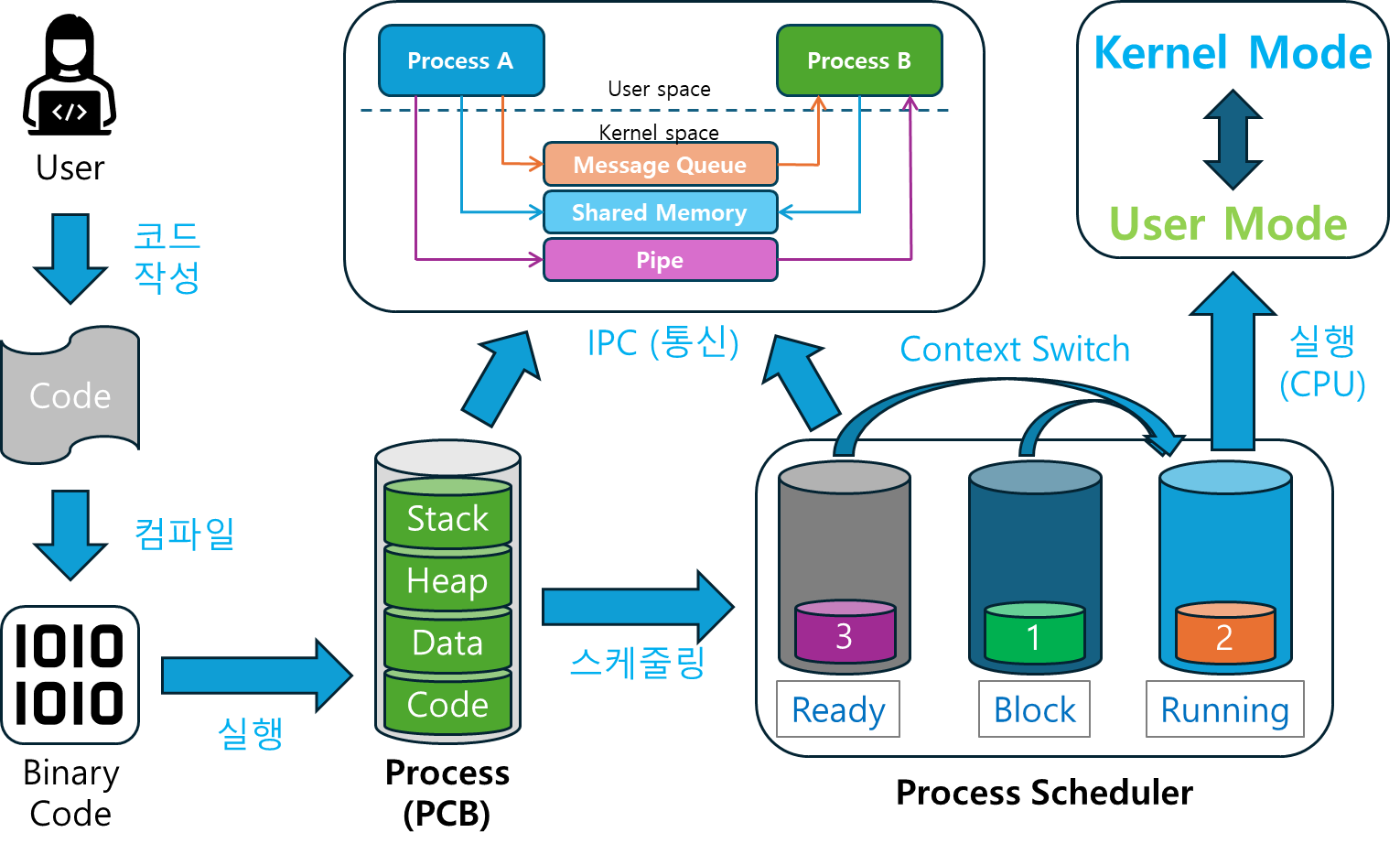 이번 포스팅에서는 운영체제에서의 프로세스, 스케줄링, 그리고 프로세스 간 통신(IPC)에 대해 알아보았습니다.