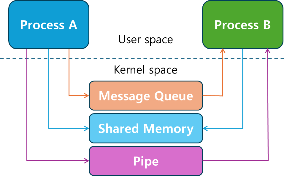 이러한 한계를 해결하기 위해 커널 공간을 활용한 다양한 IPC 방식이 등장하게 되었습니다.