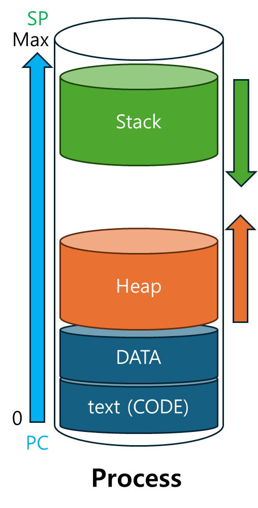 메모리에서 프로세스는 다음과 같은 구조로 구성됩니다: