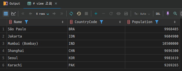 이상인 도시만 포함된 View