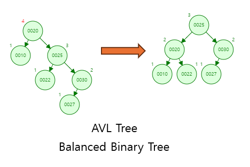 : 오른쪽 서브트리의 높이가 왼쪽보다 1 크다는 의미.왼쪽 높이 - 오른쪽 높이