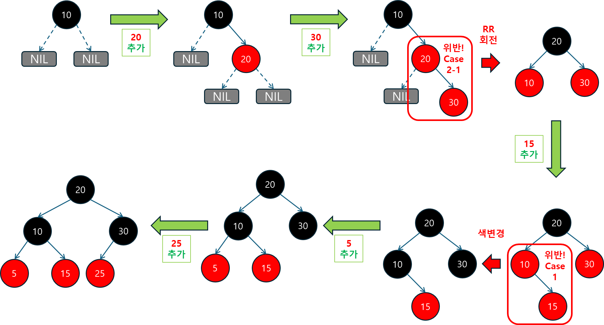 # 삽입 테스트 (10 -> 20 -> 30 -> 15 -> 5 -> 25 순서)