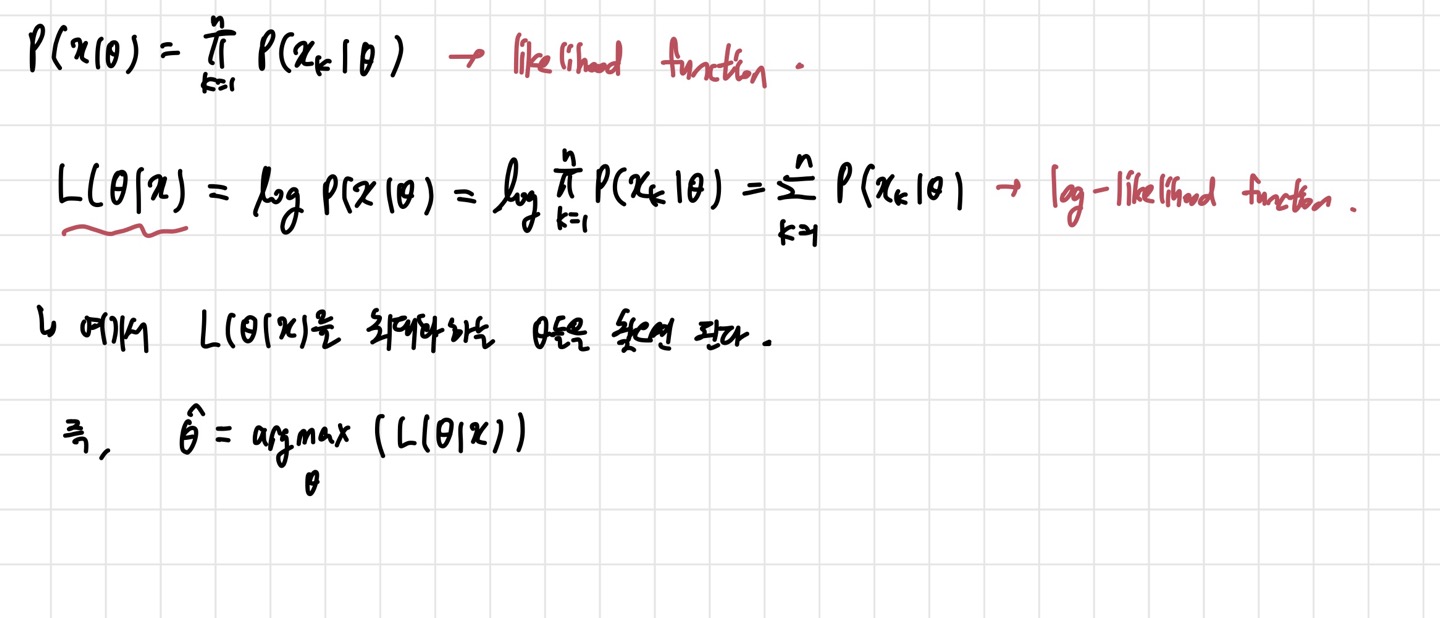 위의 사진과 같이 Likelihood function을 정의했다. log-likelihood function을 굳이 정의하는 이유는 그냥 덧셈으로 계산하면 편하기 때문이다.