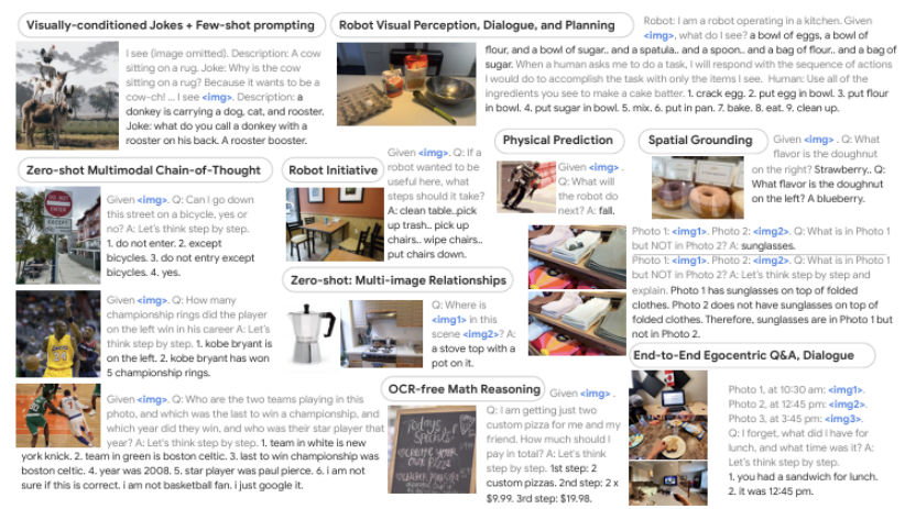 VLM은 활용도가 굉장히 높다. 예시의 사진은 PaLM-E라는 모델인데, OCR, 현재 상황에 대한 QA 등 다양한 곳에 쓰이는 것을 볼 수 있다. 이와 같이, 인공지능이 점차 General한 지식을 가지며 인간과 유사한 지능을 가지는 AGI오 관련된 연구가 활발히 진행되고 있다.