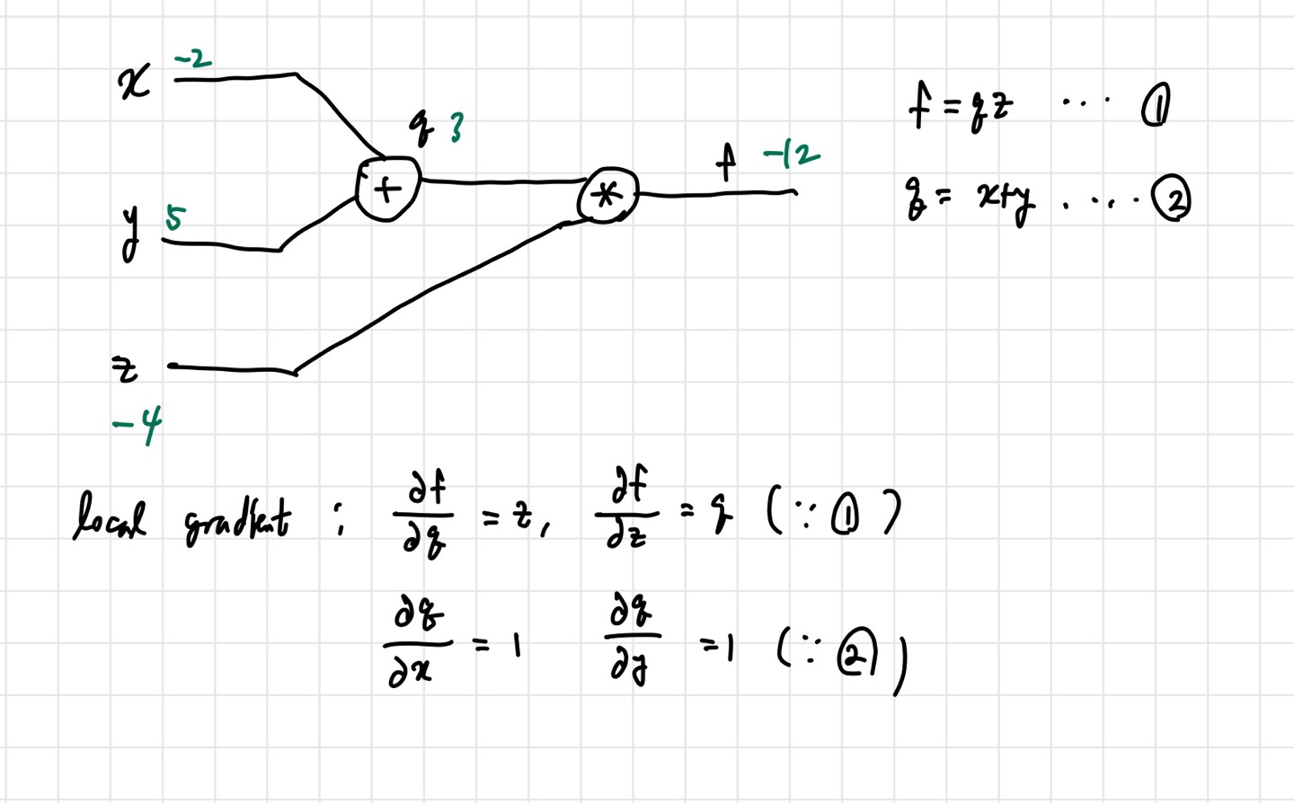 local gradient를 구할 때는 미리 주어진 값과 그들의 관계식을 이용한다.