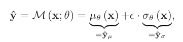 을 를 parameter로 가지고, mean image 와 variance image 를 배우는 SR 모델이라고 하자. (Variance가 uncertainty를 나타낸다.) 그러면 예측값 는 아래와 같이 주어진다.