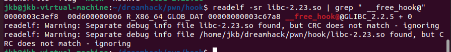 readelf -sr libc-2.23.so | grep " __free_hook@"