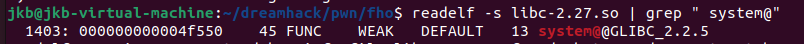 readelf -s libc-2.27.so | grep " system@"