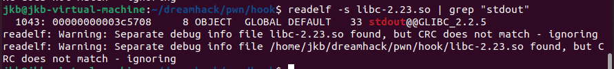 readelf -s libc-2.23.so | grep "stdout"