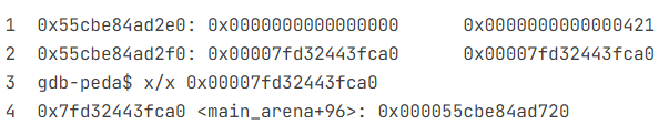 0x00007ffff7dcdca0: main arena 영역 주소
