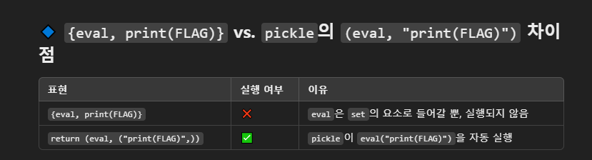 근데 궁금한게 내가 넣은 값이 print(FLAG)라면 역직렬화 과정에서 이게 실행이 돼야 하는거 아닌가