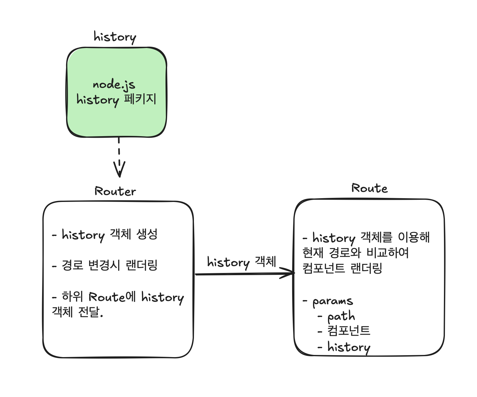 // Route 컴포넌트에 history를 prop으로 전달