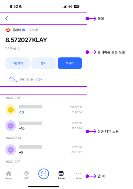 - 토큰 스왑, 토큰 받기 & 보내기 등을 통해 토큰을 교환, 전송할 수 있다.