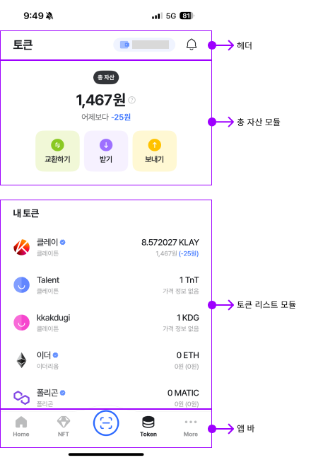 - 내가 가지고 있는 토큰의 심볼도 같이 배치해 어느 자산을 가지고 있는지 쉽게 확인 할 수 있다.