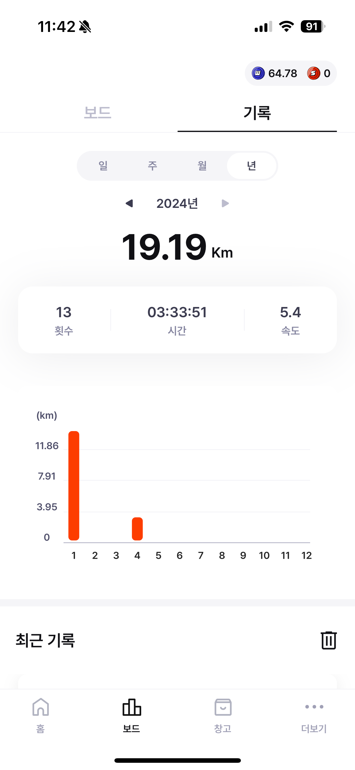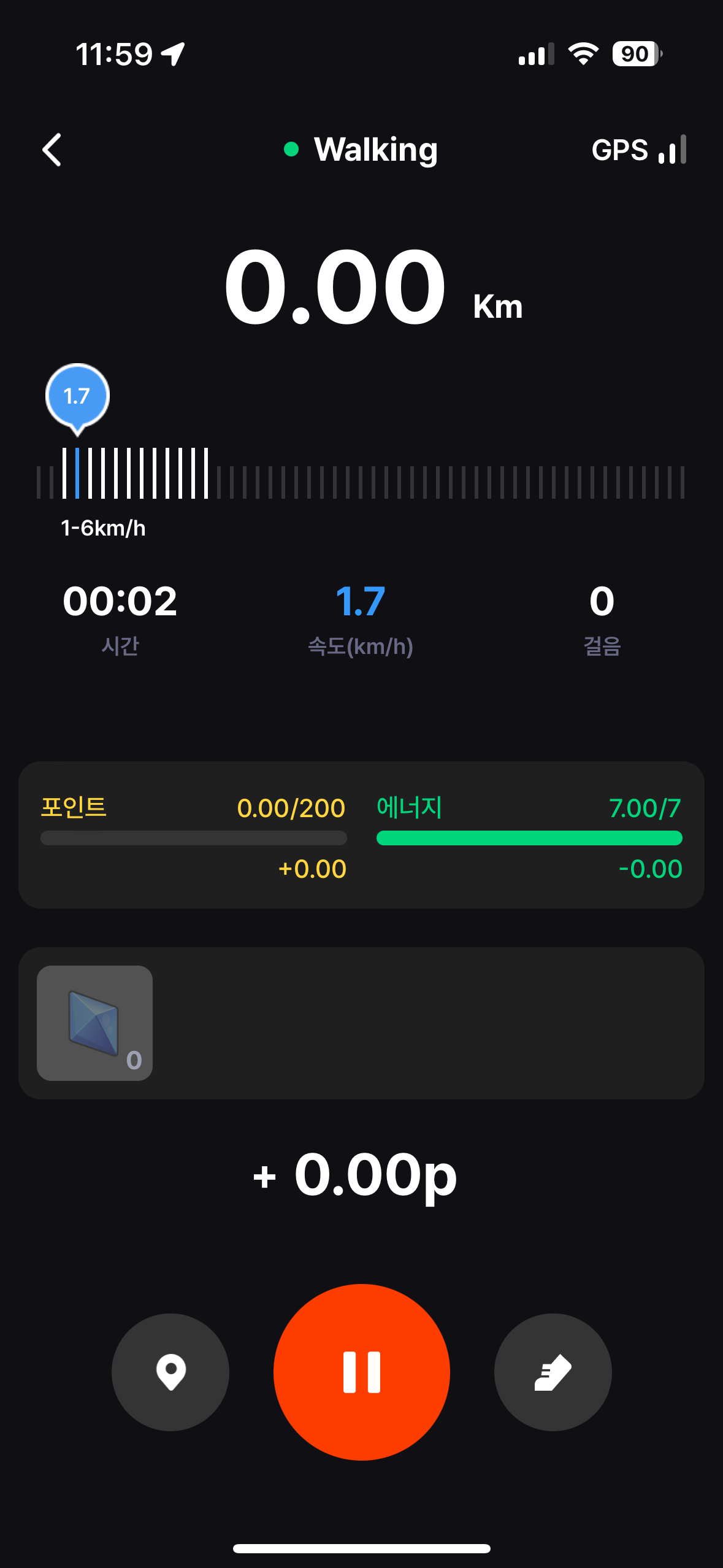 - 운동한 km 수와 시간, 속도, 걸음 수를 확인할 수 있고, 운동하면서 얻은 포인트와 사용한 에너지도 확인할 수 있다.