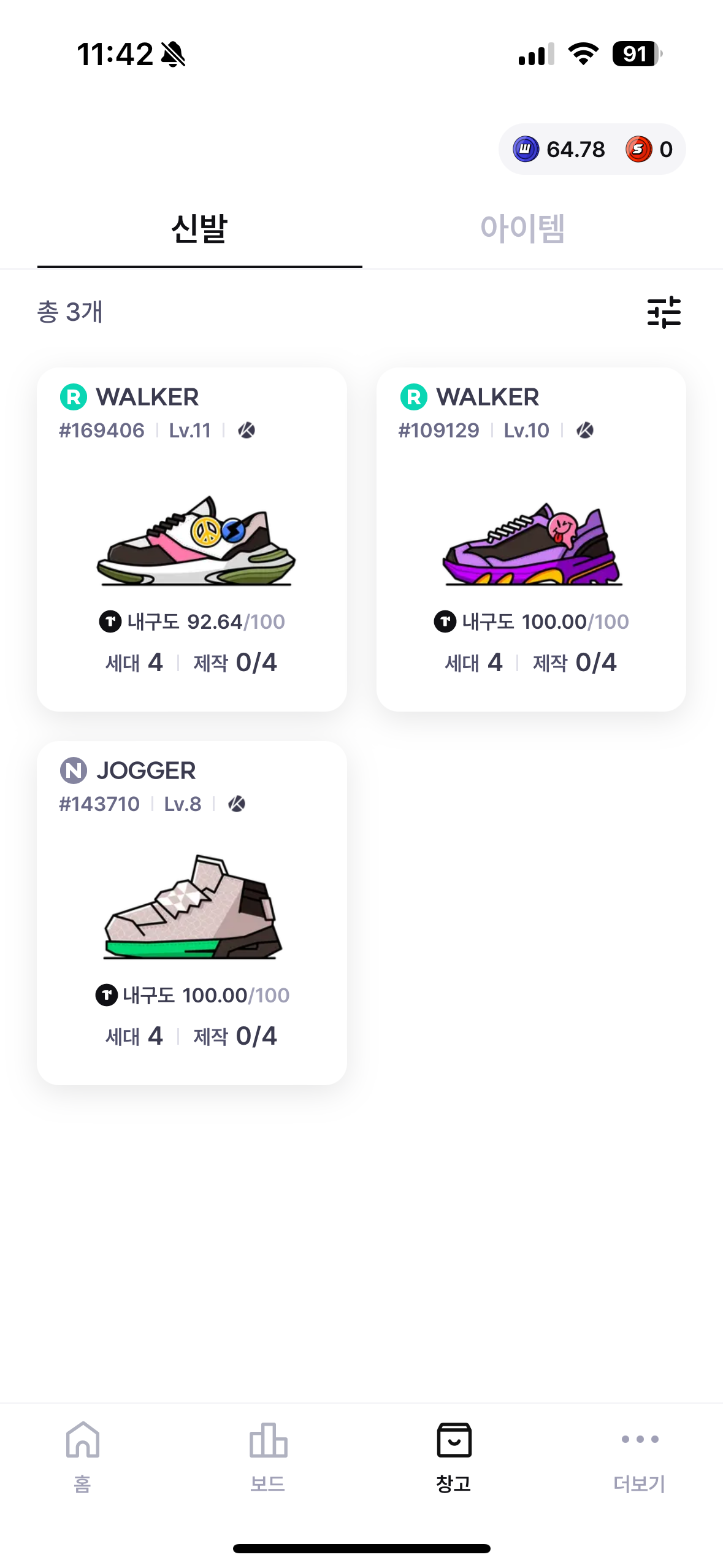 - 자신이 구매한 신발 NFT를 좌우 오버플로우 스크롤로 확인할 수 있다.