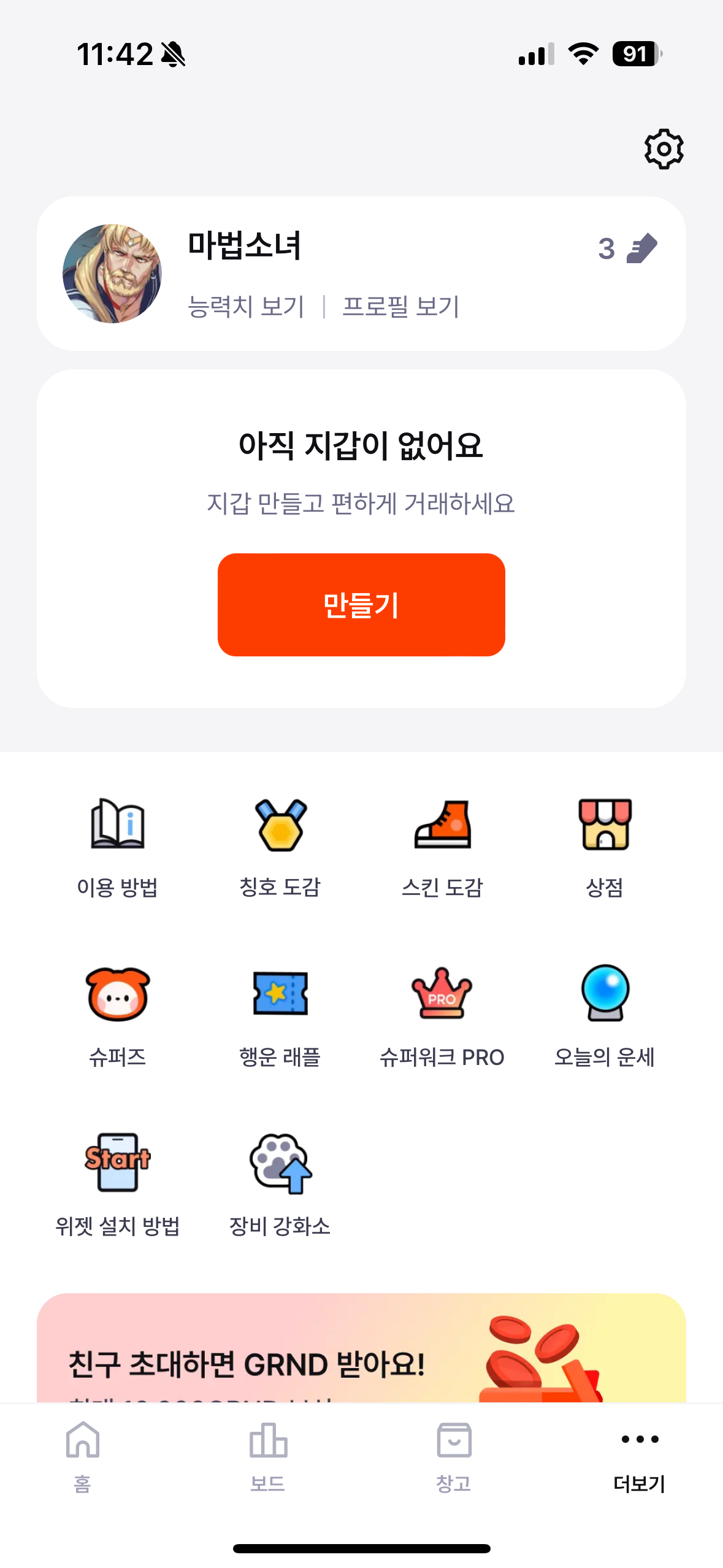 - 미니게임인 슈퍼즈, 친구목록, 알림, 지갑으로 갈 수 있는 모듈
