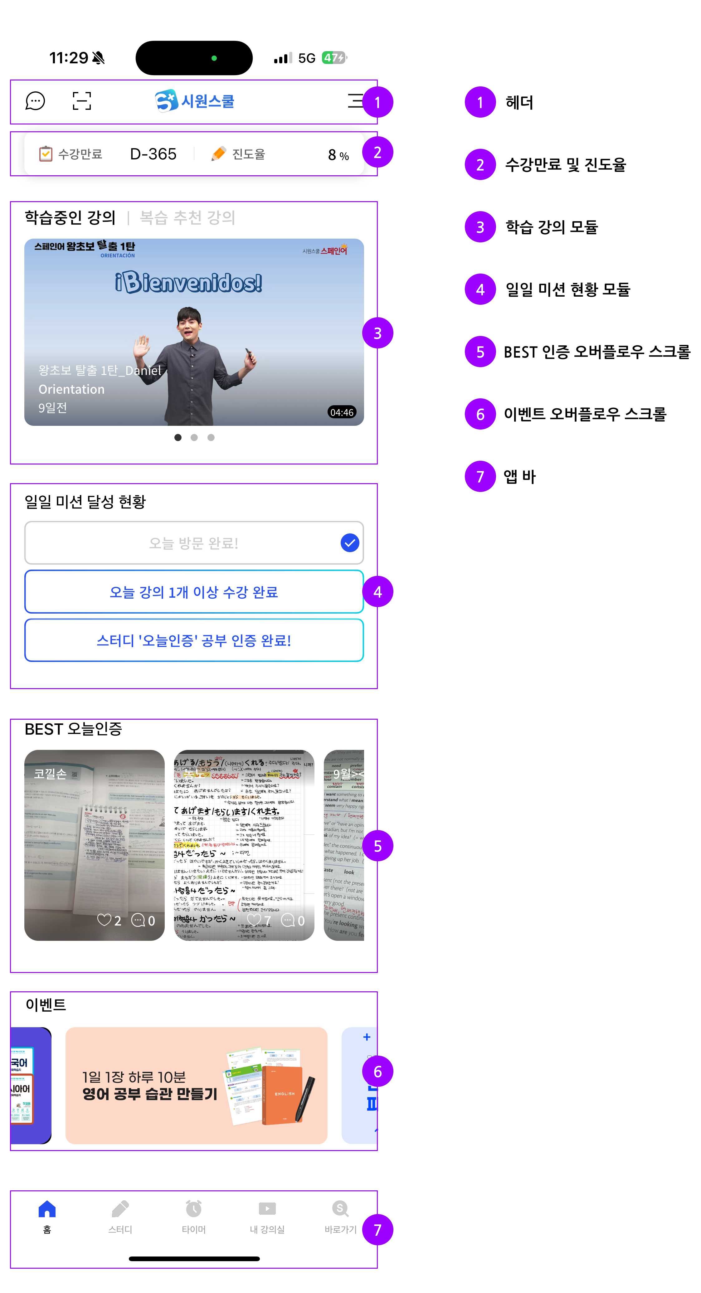 시원스쿨 플러스는 모든 시원스쿨이 제공하는 강의를 어플로도 들을 수 있는 통합 어플이다.