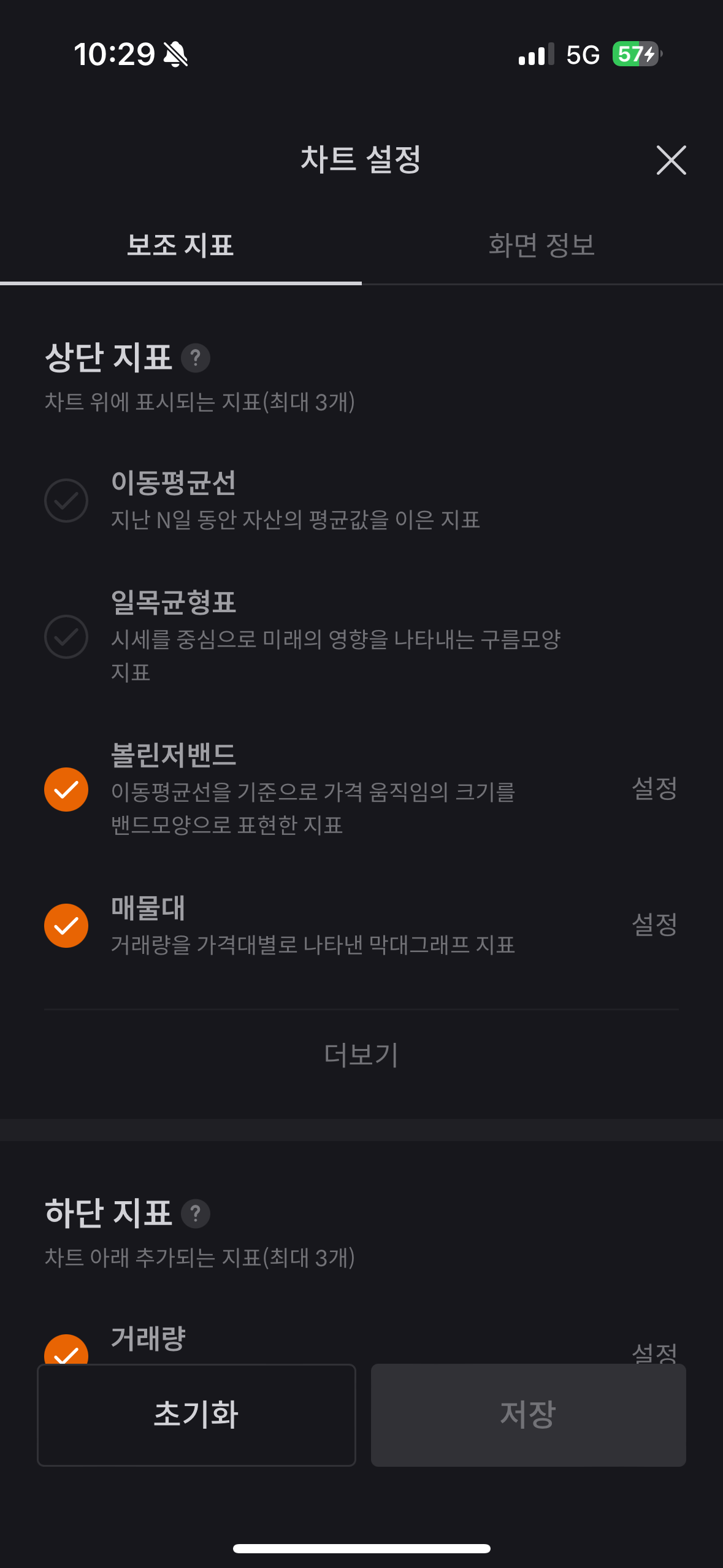 - 여러 보조지표 등을 수정하거나 삭제할 수 있다.