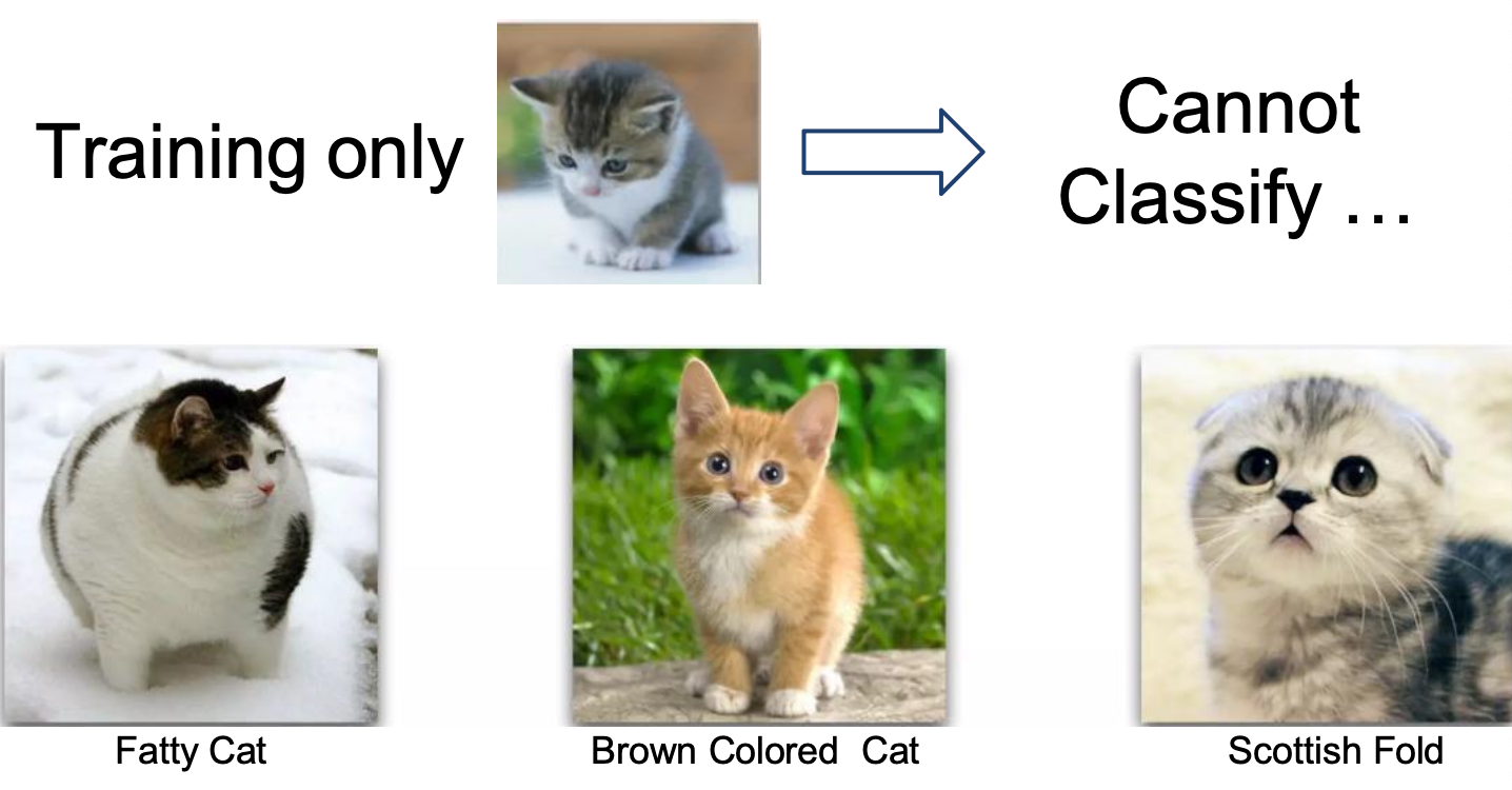 위의 아기고양이와 같은 사진으로만 학습을 해서 아래의 뚱띠고양이(ㅠㅠ), 치즈냥이, 스코티시폴드 등 학습 데이터와 다른 특징을 가진 고양이는 분류하지 못함