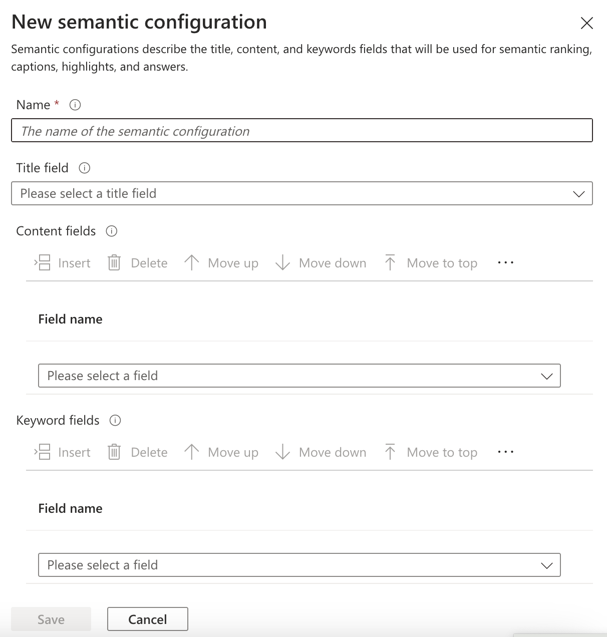 시맨틱 구성은 인덱스별로 생성해줘야 한다. 각 인덱스는 서로 다른 필드 구조를 가질 수 있고, 같은 이름의 필드라도 인덱스마다 의미적 역할이 다를 수 있고, 각 인덱스의 데이터 특성에 맞게 최적의 시맨틱 검색 설정이 다를 수 있기 때문이다.