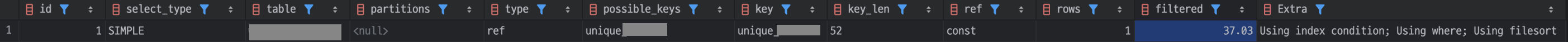 먼저 인덱스를 타고 있는지 확인을 하기 위해 explain 실행계획을 본다.