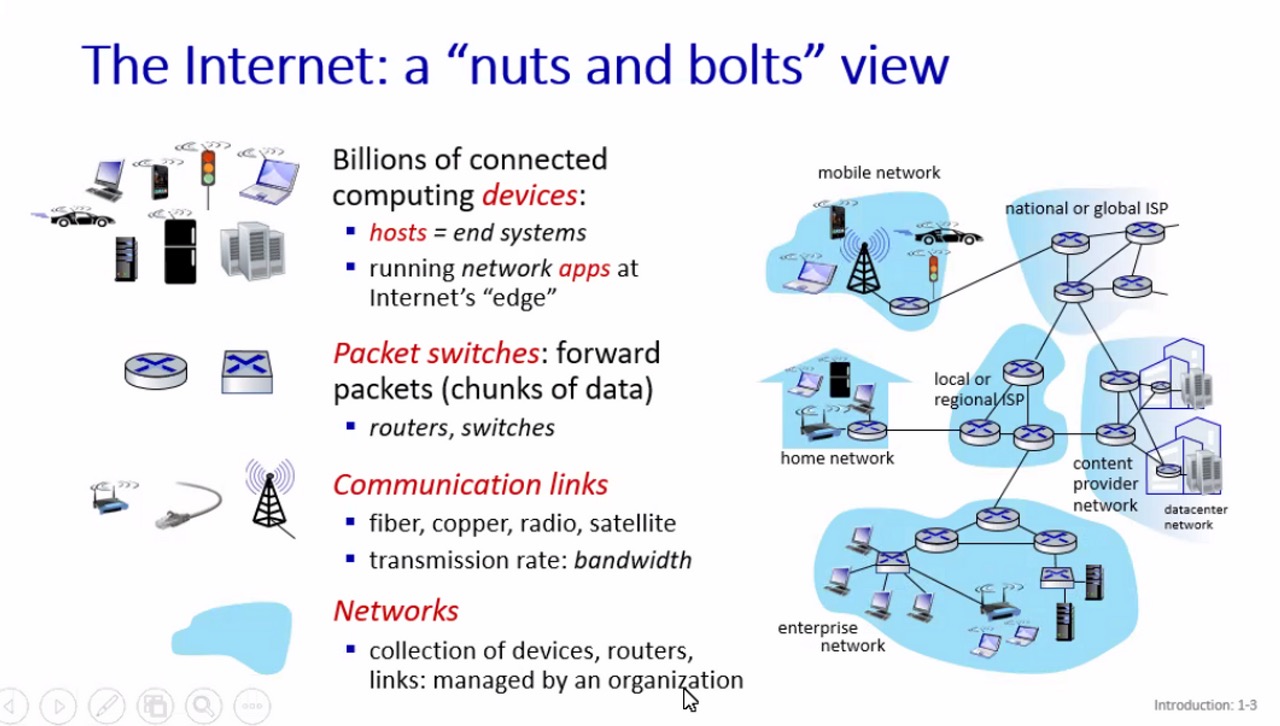 인터넷이란 전세계에 퍼져 있는 수 억개의 디바이스들을 연결하는 컴퓨터 네트워크이다.