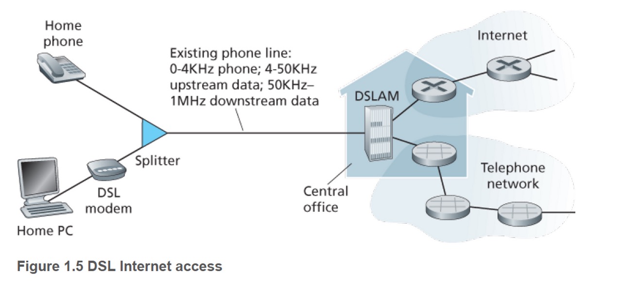 DSL 모뎀은 디지털 데이터를 높은 주파수로 변환한 다음에 전화선을 통해 전화국의 DSLAM(Digital Subscriber Line Access Multiplexer)로 전달